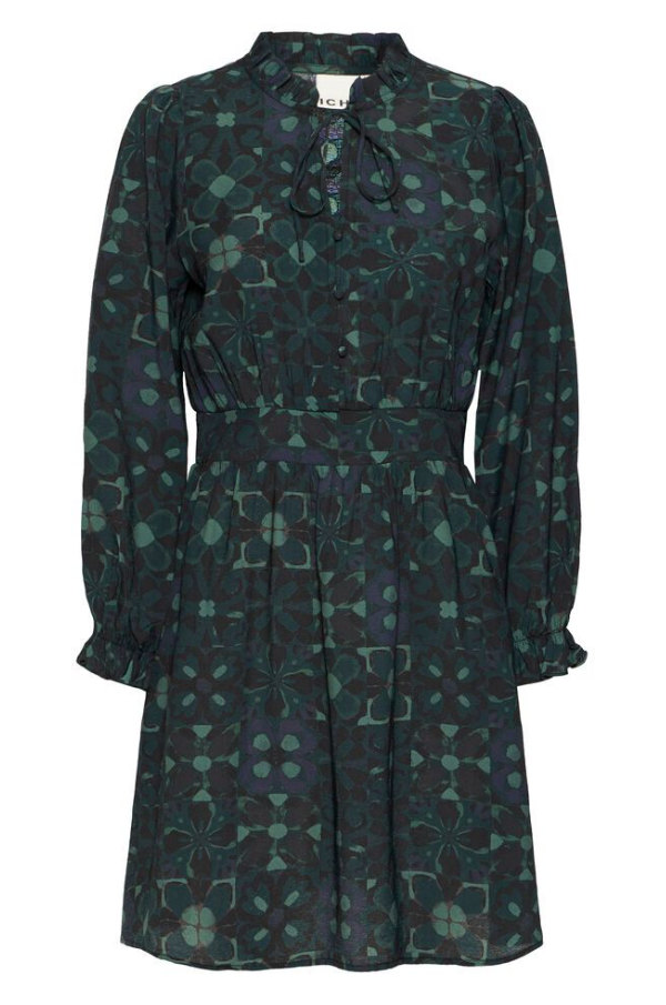 DESCRIZIONE PRODOTTO: Abito in misto viscosa con punto vita con elastico arricciata collo alla coreana e maniche a sbuffo.