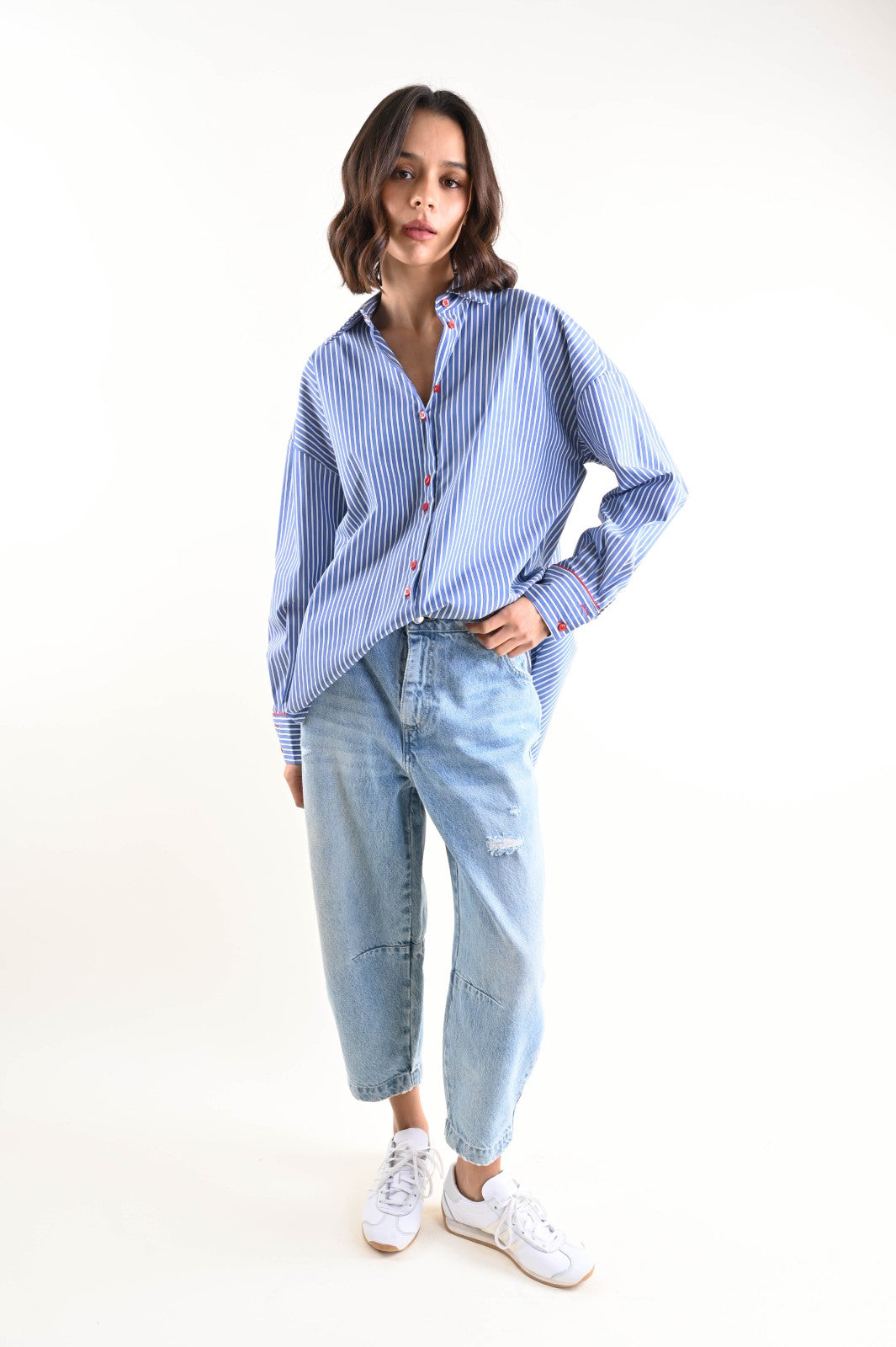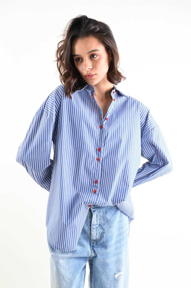 DESCRIZIONE PRODOTTO: Camicia donna a righe con bottoni a contrasto, pensata per un look contemporaneo e versatile.