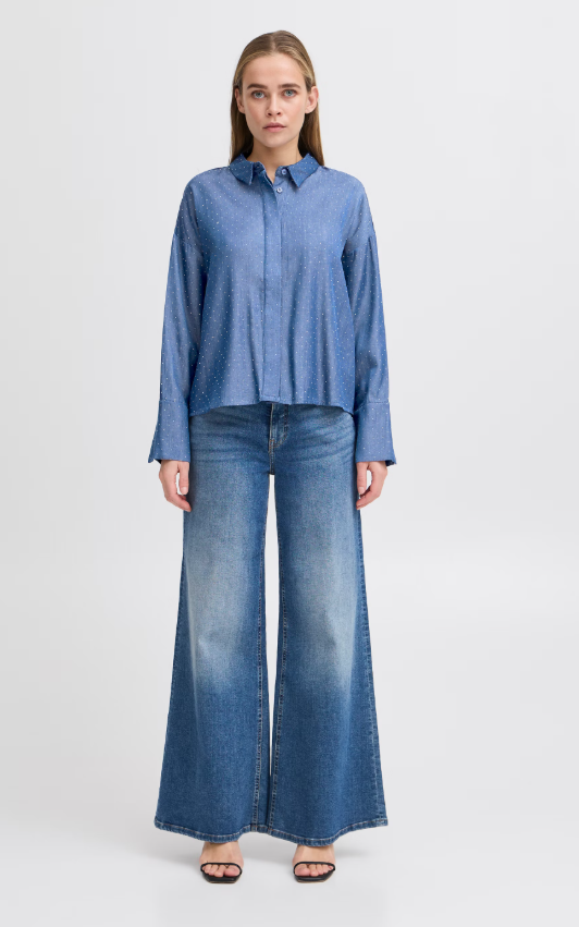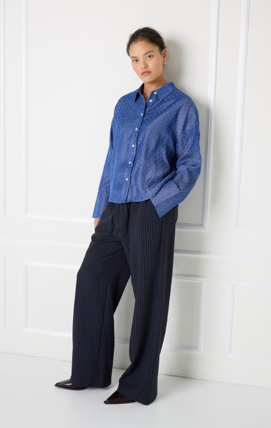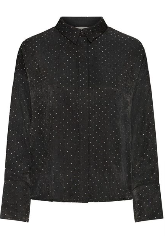 DESCRIZIONE PRODOTTO: Camicia in misto viscosa cropped con strass applicati vestibilità leggermente over.