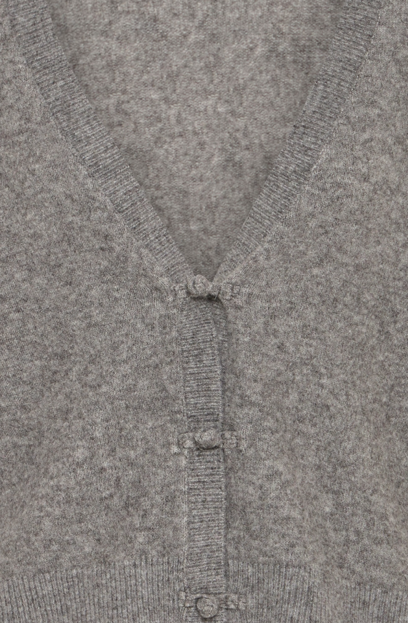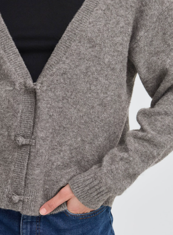 DESCRIZIONE PRODOTTO: Cardigan con una piccola percentuale di lana scollo a V è caratterizzato da una vestibilità comoda, una chiusura con bottoni a nodo maniche lunghe, offre comfort e uno stile moderno per un uso quotidiano versatile.