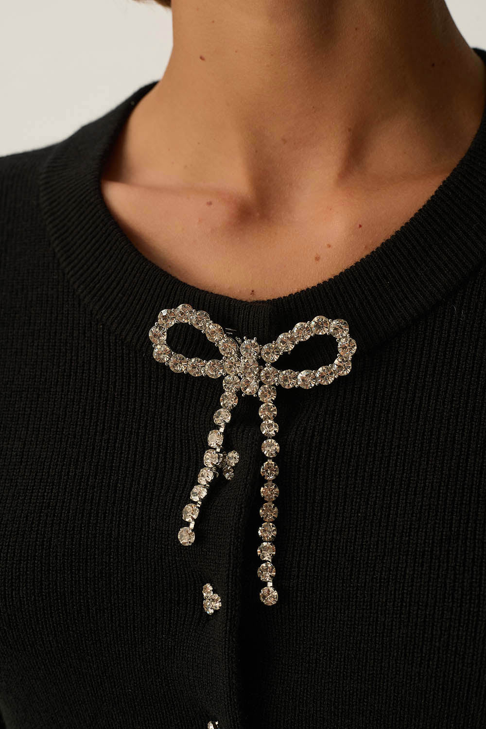 DESCRIZIONE: Ispirata ai gioielli vintage, la spilla fiocco aggiunge un tocco di brillantezza ai tuoi outfit di questa stagione. Appuntata sul bavero di un cappotto o su una sciarpa, questo piccolo accessorio farà la differenza.