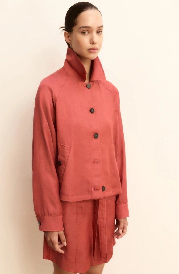 DESCRIZIONE PRODOTTO: Casual per definizione, questa giacchina in twill di misto lino contiene tutti gli elementi giusti per comporre look sofisticati: materia fluida e leggera, bottoni a vista e un tocco informale per affrontare le tue giornate.