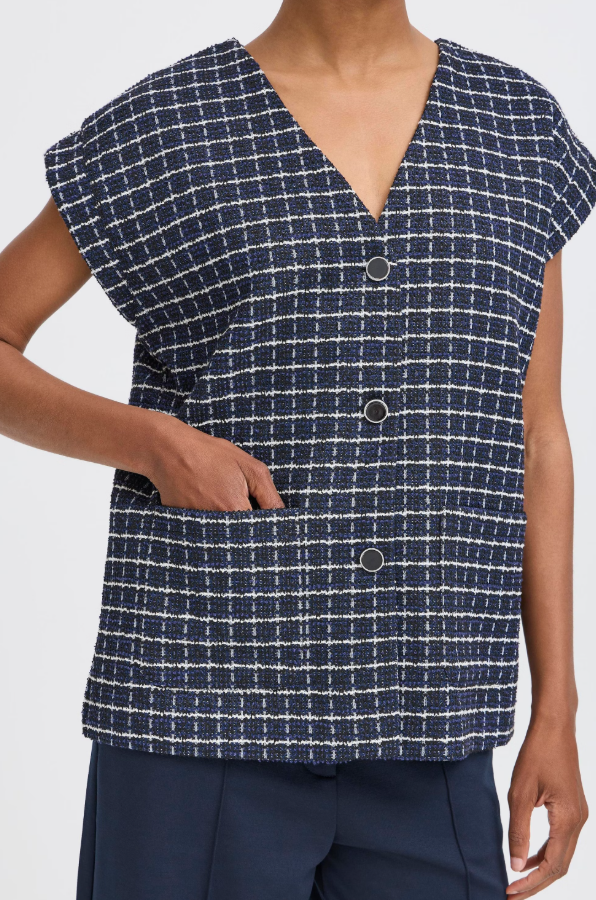 DESCRIZIONE PRODOTTO: Gilet lungo eleganti a quadri bottoni gioiello sul davanti e tasche sul davanti.