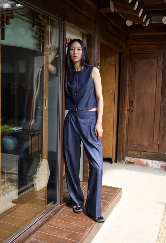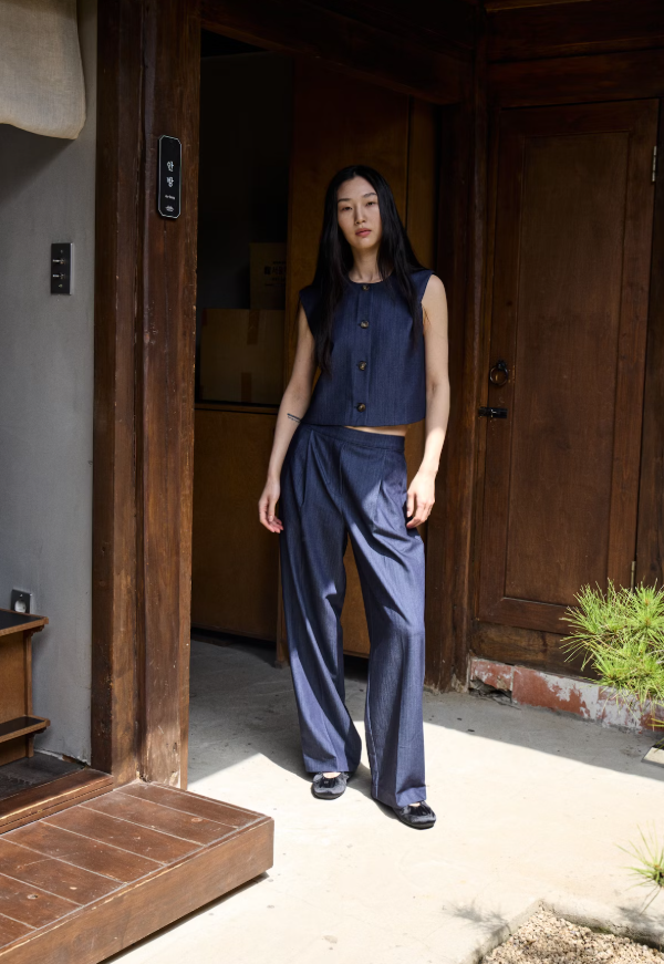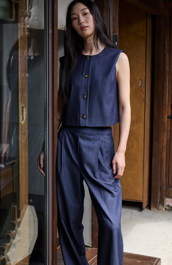 DESCRIZIONE PRODOTTO: Gilet boxy cropped in misto viscosa effetto denim con bottoni sul davanti e collo stretto.