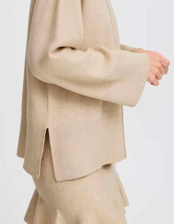 DESCRIZIONE PRODOTTO: Maglione dalla vestibilità dritta e dalla finitura morbida, con scollo rotondo pulito e cucitura centrale visibile. Spalle scese e maniche lunghe completano il look minimalista.