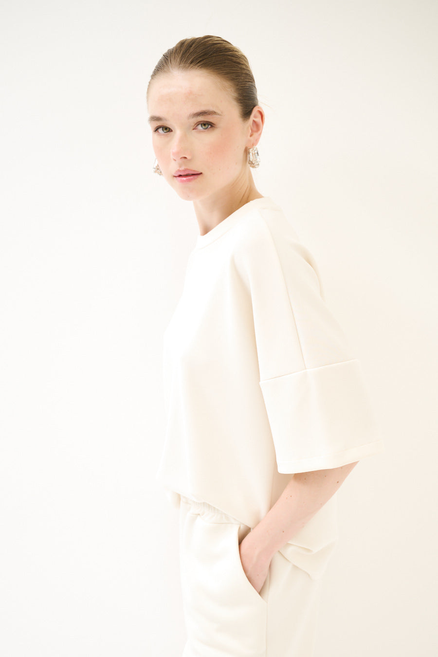 DESCRIZIONE PRODOTTO: T-shirt in scuba boxy con vestibilità over.